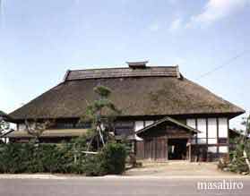 SAGA-KEN This is the southern-most part of Japan's main island, where in autumn must survive the dangerous "TAI-FU"(literally "big-wind & rain, our English homonym "typhoon"). Because of this yearly threat, the MINKA has a lower design & roof. Called "KUDORI-TSUKURI", it assumes a shape similar to that of a KAMADO found in the home's kitchen. The feudal lord Imposed many restrictions & controls on the way a house could be built. In addition, the homes may have been built lower since tall timber was not available in this area of limited arable-land. | ||||||